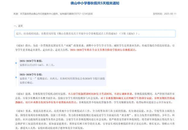 Pengpai新闻记者Tang Yingying在9月16日,商务部和其他九个部门发布了“服务消费扩展政策的某些步骤”(因此从因此作为“建议”),并在五个方面提出了19个步骤。其中,第13条教导:削弱研究假期的安排并改善支持政策。当假期总数和教学时间总数保持不变时,鼓励科学家根据气候条件,生产维修以及付费雇员的实施来调整每个学术人员的教学和假期时间,探索跌倒和跌倒的设置以及跌倒的时间,以及跌倒的时间,以及跌倒的时间,以及跌倒的时间,以及冬季的冬季,以及不可思议的冬季,以及不可思议的冬季,以及不可思议的差异,以及不可思议的冬季,以及不可思议的差异,以及不可思议的冬季,以及不可思议的差异,以及不可思议的差异,并及时及时。旅行和旅行。过去,全国许多地方都开始探索并实施春季和秋季假期。 8月25日,埃什西县人民政府办公室发出了“在主要和中学的春季和秋季休假方面做得好的通知”,这显然使所有春季学期都有春季假期迫使教育学校迫使教育学校。春假和秋季休息时间不少于1周,从原则上讲,它们与假期或周末相连,并不断安排。特定时间在当地实际条件下独立于每个县和城市的确定。幼儿园,一般高中,二级职业和技术学校等应根据参考来实施。 8月11日,广东福山市教育局发布了“佛山市政教育局在大型和中学的春季和秋季飞行员工作的通知”,该通知清楚地说,2025 - 2026年的上学意愿在整个城市的强迫教育学校驾驶。其中,秋季假期定于11月12日至14日,总共三天;春季假期定于五月假期,总共两天。特定时间将在国务院宣布假期的2026年假期安排后确定。 Foshan小学和中学有一个为期5天的公共假期,用于Tagsibol和Autumn。作为该国第一个实施春季假期系统的城市,杭州自2024年以来已经实施了20多年的春季和秋季假期,今年已被“升级”。今年4月1日,杭州市政教育局发布了“进一步改善春季和秋季假期实施的通知”,这清楚地说,春季和秋季假期将得到更多的加强,春季和秋季假期将越来越多,越来越多。进一步提高安排s在春季和秋季假期,该通知指出,原则上,春季和秋季假期为3天,学校可以使用其中一个人安排学生进行春季和秋季,在PWINE或其他社交技能活动中举行的P P会议。支持地方政府将春季和秋季假期与立法假期联系起来,以产生更长的连续假期,从而促进家庭组织活动。根据当地文化传统,山峰和其他因素,地方还可以轻松地调整春季和秋季假期。尚未确定春季和秋季早餐的地方应进行深入研究,全面评估,并尽快进行。许多地方还发布了文档,以鼓励对春季和秋季假期的研究和探索。今年8月1日,吉州省人民政府总办公室发布了“实施计划的特殊行动计划在圭村省的提升消费量清楚地探索了大型和中学的春季和秋季度假系统。5月26日,河南省人民政府的总办公室发出了“通知”通知“宣布采取特殊行动的计划,以提高河畔省省的消费计划。鉴于实际情况,鼓励探索在小学和中学的春季度假和秋季建立。 4月12日,一般政府办公室省发布了“海南省的增强和扩大消费的三年行动计划”,严格实施带薪的年假系统,鼓励有偿的年度假期和短暂的假期,以获得灵活的假期休假,并在春季和有利可图的SC探索根据实际条件,小流木设置。汤昌研究所首席研究员陈·乔贡(Cheng Chaogong)在论文上的一次采访中说,国庆节和中期节日假期途径,商务部和其他九个部门发布了“步骤”,标志着不断扩大的旅游业政策的修订增长,为旅游业带来了巨大的好处。其中,为主要和中学学生优化假日组织的步骤是最直接推动的旅游消费。 Cheng Chaogong认为,安排小学和中学的假期安排,尤其是在春季和秋季假期将冬季和冬季假期分开,近年来居民安排的假期的五月天和国庆节假期的整合是居民的重大变化。这项政策的结合和有带薪休假的迅速人口有望进一步刺激t的需求消耗在漫长的假期期间,与我们的家庭旅游相关,为排除居民的家庭度假提供了更灵活的选择。例如,秋季假期模式 +国庆日黄金周可以有效地消耗标签加热的消费,并扩大秋季高峰旅行期的窗户季节,从而带来增加的消费。但是,许多父母还评论说:“没有人照顾孩子。”一位父母在一场论文采访中:“我最近听到了相关的谣言,但实际上,我的学校从未认识过我。我期待他们在春季和秋季度假。孩子们可以在外面度过更多的假期,但是如果他们可以长时间的孩子去孩子。相关消费。h提到“措施”中的5至19个项目与扩大和升级旅游消费密切相关。 Cheng Chaogong指出,扩大文化和博物馆地区和好地方的企业营业时间的扩张政策的建议将有效地减轻旅行峰值期间文化和博物馆地区的“困难”,并可能部分解决对Ravine和Conblece of Compuse的“瓶颈”的供应。预计相关政策将对隔夜游客的比例增加和在主要旅游城市的住宿时间产生重大影响。此外,增加文化产品供应(例如高质量的体育赛事和文化演讲)的维修将创造更多的“理由”,以将人们释放出家,还将为旅游业带来更多的消费。该问题的高级编辑Zhou Yuhua