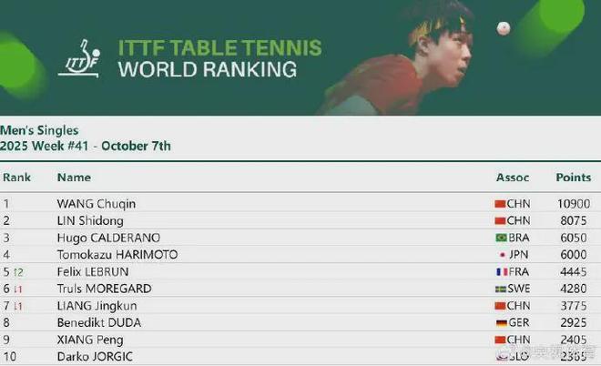 今天,ITTF在2025年第41周宣布了全球排名。WangChuqin的排名从9425分跃升至10900分,凭借赢得了WTT中国大满贯。王·楚平(Wang Chuqin)的排名点从9425点跃升至10900分。在女子单打中,“十万个女王”孙·伊格哈(Sun Yingha)继续领导世界各地。以前在第169周中排名的孙而达(Sun Yingha)继续带领世界达到双打。 Kuai Man/Lin Shidong以前被排名为三。 Wang Chuqin/Sun Yingha升至第三。 Kuaiman和Lin Shidong首先将混合物排名两次。王·楚平/林·希邦(Lin Shidong)在双人队中排名四分之四。王·楚平(Wang Chuqin)和林·希(Lin Shidong)在双人队中排名四分之四。 WTT中国大满贯的哪些表现球员刚刚通过您?让我们回顾这个WTT中国大满贯的美好时刻。王·楚平(Wang Chuqin)获得了“三冠王”。在这个WTT中国大满贯中,王楚平获得了三冠王。让我们吧看看“三冠王”是如何实现的。 10月3日,WTT中国大满贯混双决赛中,王楚钦/孙颖哈击败队友黄宥政/陈怡,夺得WTT中国大满贯混双冠军。 10月4日,WTT中国大满贯男双决赛进行“中国德比”。王楚钦/林诗栋以3-0战胜周启豪/陈俊松,夺得冠军。中国队获得男双冠亚军。这也是王楚钦在中国获得的第二个大满贯冠军。 10月5日,WTT中国大满贯男单决赛中,王楚钦以4-0战胜菲利克斯·勒本,夺得男子冠军。至此,王楚钦取得了男子男子、男子双人、混合两项的“三冠王”。国庆以来,王楚钦在5天内打了12场比赛。赛后,王楚钦结束道:“我觉得整个过程还是很艰难的,就像一场马拉松。在这个过程中,我心里还是有一种责任感和使命感的。”心将支持我直到最后。” Youzheng/Chen Yi和WTT中国大满贯的冠军胜利。他们中的两个人现在可以竞争训练,他们可以在这里没有过多的发展。D女子单打在这场比赛中获得亚军。王·甘尼(Wang Ganyu)赢得了双冠。 10月4日,在女子双打决赛中,中国武士/王·甘尼(Wang Ganyu)的组合击败了日本和韩国交叉关联Hayata Hayata Hina/Zhu Qianxi 3-1的组合,并赢得了女子双打冠军。 10月5日,在WTT中国大满贯女子单打决赛中,Wang Goyu以4-2击败了Sun Yingsha,并赢得了冠军,赢得了女子冠军和女子冠军。值得一提的是,在WTT中国大满贯女子单打颁奖典礼上,中国乒乓球协会主席Wang Liqin向Champion Wang Ganyu致敬。 Lin Shidong连续获得9分,WSA TT中国大满贯男子单打1/8决赛,Lin Shidong以3-1击败了Carlson,并进入了前8名。在第一场比赛中,Lin Shidong的动力充满了动力,连续9分,并迅速确立了他的优势。 WTT中国大满贯的活动结束了,国家乒乓球队赢得了五个冠军。接下来,国乒将参加2025年印度乒乓球亚锦赛团体赛。根据国际乒联公布的乒乓球队队员名单,男队:王楚钦、林诗栋、梁靖昆、向鹏、周启豪女队:孙颖哈、王赣榆、陈幸同、蒯曼、王艺迪比赛将于10月11日至15日在首都布巴诺斯瓦尔举行 印度奥里萨邦。获胜者将获得500点世界排名积分。国乒在本次比赛中会有怎样的表现呢?让我们拭目以待,为国乒带来欢乐吧!