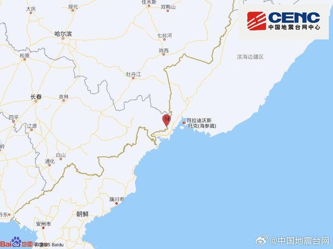 中国地震台网正式检测:10月25日19时45分,吉林延边州珲春市(北纬43.08度,东经131.1...