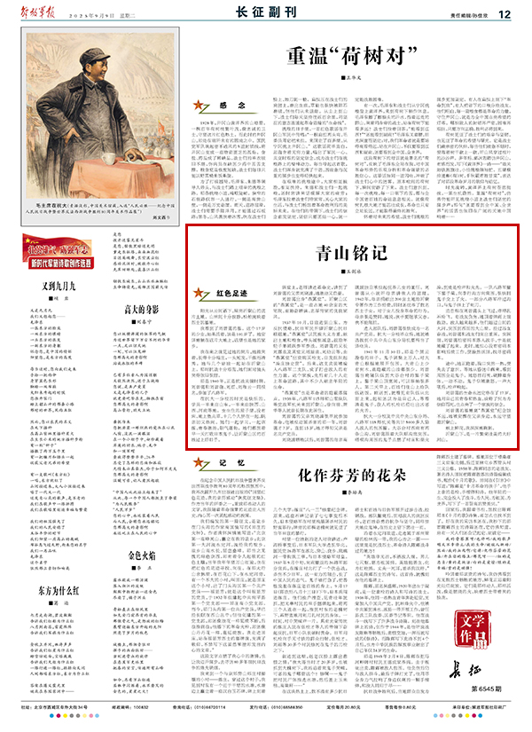 记得绿色山脉■王江的阳光从云层闪耀,并解释了这山山的土地。山和森林保持沉默,松树和柏树保持了烈士的墓地。我看到了刘Zengai的坟墓。如果这个17岁的女孩还活着,她应该年满101岁。他在这片土地上是和平的,这也是该镇。到达之前,我看到了她的照片。她笑了,看上去很高,有短发,能力且优雅。她和一些女孩一起站在约门山上。当时,与日本的战争非常困难,他们仍然在镜头前甜蜜地微笑。那是1940年,这是一个关键的抵抗战争。 Liu Zengai,Liu Zengyun,Liu Zhe和Liu Zhiyun一起签约参加了第八路。我的时光首先是简单的,很有趣。一半的学生来自山东,一半来自Shaanxi,Shanxi,Henan和其他地方。女孩住在没有床的卧室里,一个D的地面上有草,十几个人在一起,既友好又充满活力。他们一起学习并一起练习,充满了青年和活力。他们都认为有一天会击败日本魔鬼,让奉山的人们过着美好的生活。在课堂上,老师谈论了革命的历史,并谈论了刘Zengai的父亲刘小杜(Liu Xiaopu),他感到兴奋和自豪。刘Zengai出生于“ Yanyitan”。伊蒙山(Yimeng Mountains)的“ Yanyi Hall”是一座大型豪宅,覆盖了40多公顷土地的区域,具有良好的家庭努力和诚实的传统,可以通过家族。 1937年10月,日本入侵者袭击了山东。为了防止入侵,反日和平民军队开放了伊蒙山的反日基础。 “ Yanyitan”专注于国家司法,为土地和食物做出贡献,领导租金和利率的降低,并鼓励儿童积极参与陆军并参加战争。 Liu Zengai的兄弟Liu Luquan和他的堂兄Liu Ziquan和Liu Youyun等投资了“ Yananyitan”购买枪支,并愿意修理“ Duzhuang Independent Camp”。后来,这支武装部队被整合到第八军路线的第二支队中,并成为攻击敌人的重要力量。在这个家庭中,十二个人开始了革命性的道路,其中许多人牺牲了年轻的生活。 “ Yanyi Hall”也是革命者的隐藏地方。 1938年,第八军路线和山东支柱以及其他政党,政府和军事器官的第115师来到了伊蒙山,徐小,小瓦和其他人在那里居住了很长时间。 Liu Zengai的父亲Liu Xiaopu在革命的早期。刘Zengai只有7岁的那一年。直到15岁时,他才发现他的父亲是共产党人。 Liu Xiaopu死后,Liu Zengai的M其他Gao Qiyuan负责抚养孩子。刘Zengai听说了母亲关于从那以后成为一个人的原则的谈话。 1942年,我的母亲以工作基金为基金会向奉献办公室捐赠了200公顷土地,还养育了一些烈士的孩子。母亲来到哈斯蒂的女儿加入了革命。他说我不能阻止他的儿子继承父亲的野心。进入陆军后,刘Zengai很快成为共产党的成员。从反日战争的第一所学校毕业后,他被选为中国共产党中央委员会机密的山东分支部门的翻译。 1941年11月30日,这是乌云密布的一天。日本人动员了成千上万的人围绕着大平汉的基地。大平山上有一些树木,甚至几乎没有隐藏的沮丧。 Liu Zengai跟随团队前往Liangligang那天晚上的Ogutai村。 Liangshan山的顶部很广泛,许多人可以容纳。早晨,人们爬上山向团队运送食物。当我到达时,我看到一个团队从北部崛起。起初我以为是我自己的人。当我看到它的一个下午时,敌人的机枪释放了一口激烈的火舌。超过5,000人,包括反日本大学的第一分支,中国中央共产党委员会的山东分支,第八军的第八军,路线等,被敌人包围。西部 - 西方村庄达古泰(Dagutai)有两个山谷,刘Zengai跟随该旅在山谷下闯入。 Wutasgou周围的日本人在村庄和木制的木头中闪耀着,枪声和火的声音到处都是。一支第八军的路线团队离开了牛济尼格,摧毁了利克辛格,很快就参加了日本人的战斗。该路线的一些第八军冲了到达运河的入口,并与日本人用刺刀作战。 Ang Mga Mortar飞过Liu Zengai的头,吹岩石。一些同伴受伤,他在弹药的雨水下救了他。有更多的敌人,他们越过山上的河流并摧毁了西部山脉。一场血腥的战斗之后,刘Zengai和他的同伴爆炸了。在破碎之前,刘Zengai担心代码书会落在敌人身上,所以他藏了自己。目前,他担心没有密码簿会影响后续工作,因此他决心返回查找密码簿。在旅途中,他在奔跑,他的胸部突然变得热,他失去了意识。当他从昏迷中醒来时,他看到周围有日本人。她瞥了一眼,以强烈的方式抓住了自己的身体。日本人似乎很生气,在剧情强烈的愤怒之后,枪声声音。刘Zengai的生活在那个时代永远被冻结17岁。他利用自己的青春来解释他想为信仰而死的东西,并解释了一个家庭的信仰。刘Zengai的公墓距离“ Yanyi Hall”纪念堂不远。他被埋葬在父亲旁边,永远守卫着阳山。当我展示鲜花时,我深深地弯腰。在阳山的脚下,有一条繁荣而美妙的河流和山。